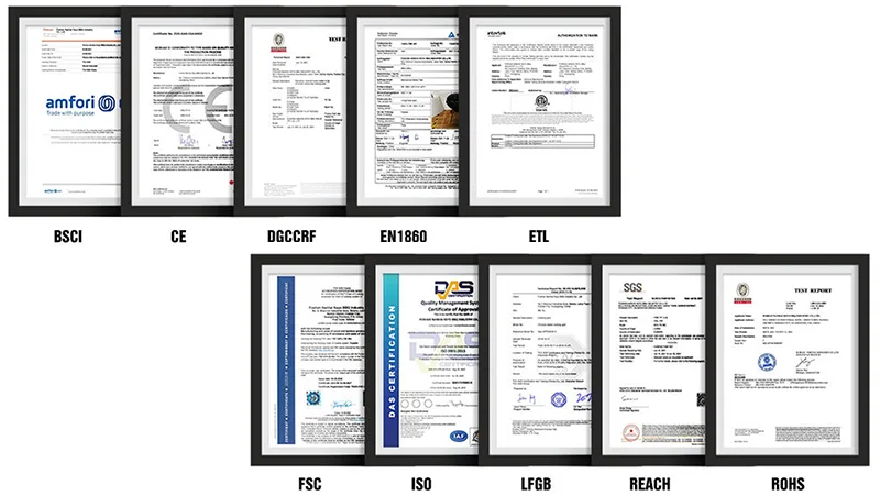At KEYO, we take immense pride in our commitment to quality and operational excellence. We hold a comprehensive range of industry certifications, including ISO9001, ISO14000, BSCI, FSC, and SMETA, showcasing our adherence to stringent international standards. As esteemed members of Sedex (B), we consistently demonstrate our dedication to ethical business practices and social responsibility.Our products meet the highest industry benchmarks, complying with regulations and standards such as GS/EN 1860-1, LFGB, DGCCRF, FDA, Dutch Food Contact, PAHs, CE, UKCA, and ROHS. These certifications attest to our unwavering focus on quality assurance, safety, and environmental sustainability, ensuring that our clients receive products that are reliable, safe, and environmentally friendly.